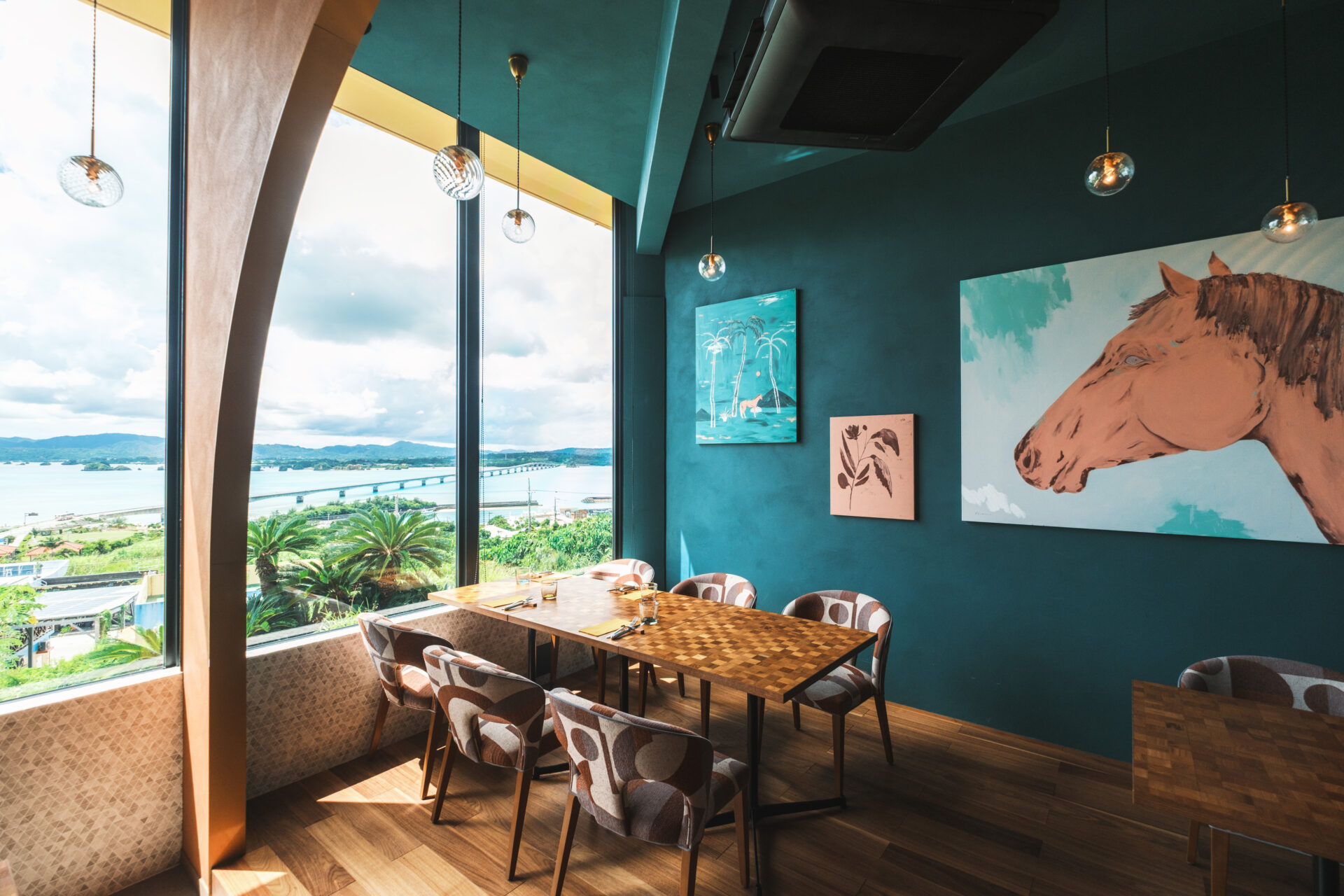 透明度の高い美しい海と古宇利大橋を望む高台に建つホテルのメインダイニング『Restaurant OCTO』は、「美味を通して心身が深呼吸する場所」をコンセプトにしたレストランです。